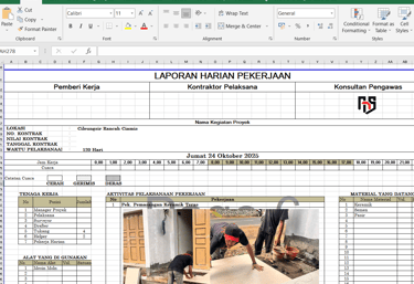 Laporan harian proyek adalah catatan aktivitas pekerjaan yang dilakukan setiap hari di lapangan.